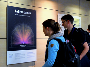 Nous avons exposé des visualisations de données en grand format, créées à la fois par les laboratoires de recherche de l'INSEP et par des data designers, data journalistes ou des passionnés de données sportives.